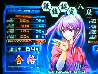 ところでSP九段の段位認定、ちょっと、いやかなりキツくないですか・・・!?いきなり1曲目で残り6%まで削られましたけど・・・。(もちろん、2曲目の穴オーロラで墜落。)