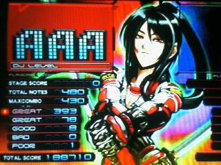 まずINORI。これは、さすがにTAKAのトランスだけあってレベル8としては結構難しい部類に入ると思いますね。単純に俺の指配置的にキツイだけなのかも知れませんが、正規だと終盤が結構疲れる。しかし何よりも問題なのは、ムービーの最後にAULORAの人が出てくることでしょう。