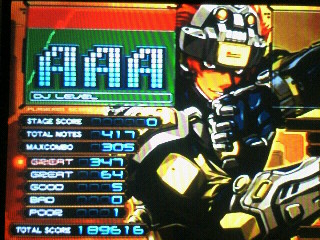 この難度の一体どこがレベル9だと言うのです?あのラス殺し譜面、小生にはレベル11オーバーとしか思えませんね。全く、スタッフの方々の判定基準が全く理解出来ないと言うものです。ラストで墜落、B。