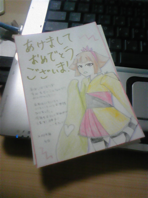 年賀状喜んでいただけたようで。露骨にロリ絵とかかいたろーかなーとも思いましたが自重しました。キャラデザも面倒だったので彼女に…(笑)自宅戻ってから12Xさんの年賀状初見するので楽しみです☆
