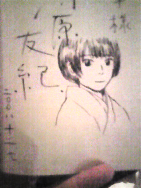 蟲師のサイン会のため、13:15頃に退却してからそのまま書店へ。書店のすぐそばのコンビニで昼食を買っておきました。整理券の番号は9番だったのでさほど待つことも無くすぐに順番がまわってきました。今回は(失礼ながら)古屋さんの時とは違い、事前に何を聞こうかとか考えていたのですが、漆原さん本人を前にして全てデリート。ぎりぎり、「どのキャラを描きますか?」という提示には予定通り「ここは合えて廉子さんで!」と答えることが出来ましたが、あとの会話は全て思いつき。