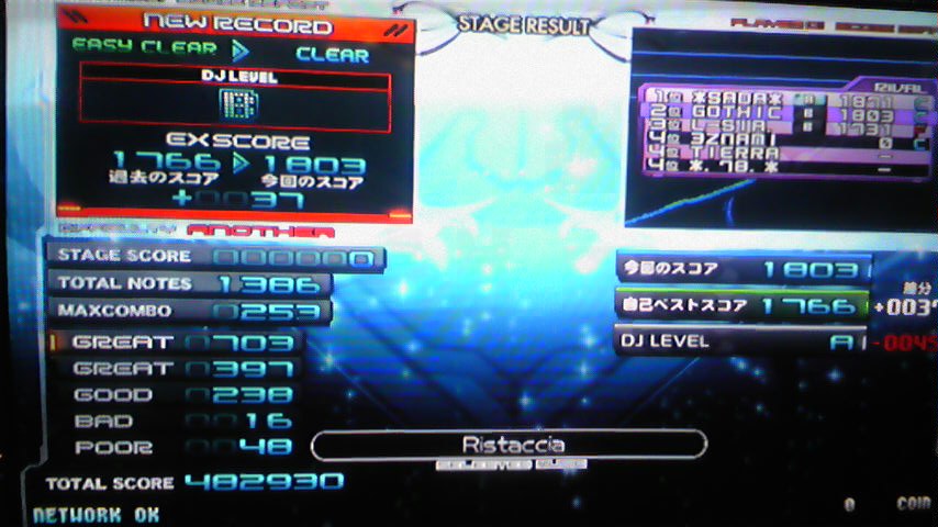 今日は11の新規クリアは多分無し。10で放置しててクリアしてなかった曲とか、EMPの灰で未プレイだった曲とか、クリアマークは付いてるけどスコアは付いてない昔の低レベル曲とか。
